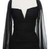 Womens Formal Bodycon Mini Party Dresses Long Sleeve Ruched Corset Ball Gown Sequin Cocktail Gala Dress for Women Black